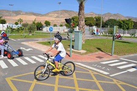 Los primeros alumnos en acudir el Parque Infantil de Tráfico de Vícar, a realizar los exámenes prácticos de conducción de bicicleta bajo este nuevo e innovador carnet, han sido los del CEIP 'Blas Infante', de La Gangosa, y próximamente lo harán los del CEIP 'St Sylvain d'Anjou, de este mismo núcleo.