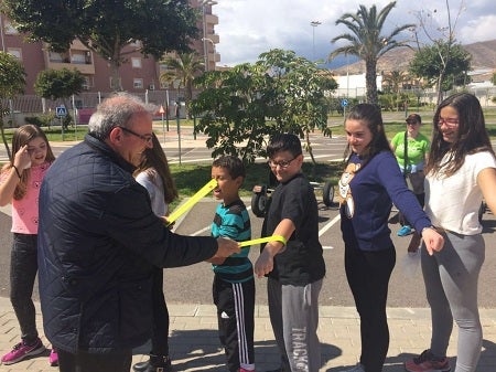 La décima edición del programa de Educación Vial Escolar de Vícar, ha cerrado un nuevo trimestre habiendo desfilado por el mismo alrededor de 2.500 escolares de los centros educativos vicarios. Los últimos en hacerlo han sido los alumnos del CEIP St. Sylvain d'Anjou, quienes al finalizar la última sesión de su prácticas en el parque de tráfico del Centro de Educación Vial , han recibido de manos del alcalde de Vícar y de los concejales de Educación, Almudena Jiménez, y de Tráfico y Movilidad, José Luis Leseduarte, brazaletes reflectantes, además de animarles a trasladar los conocimientos adquiridos en su paso por el curso, a la vía pública en su condición de peatones o ciclistas.