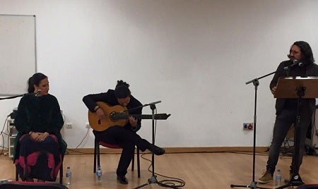 La cuarta sesión de 'Letras en Solfa', iniciativa impulsada por el área de Cultural del Ayuntamiento de Vícar, a través del Servicio Municipal de Bibliotecas, y con la que se pretende motivar la afición por la lectura, a través de otras manifestaciones culturales, tuvo como protagonistas al flamenco. La sala Urban, de la Casa de la Juventud y el Deporte, fue el escenario elegido para el desarrollo de esta cuarta cita, abierta a todos los vecinos, en la que literatura y el flamenco se mezclaron para enriquecer de forma amena la actividad lectora entre los asistentes.