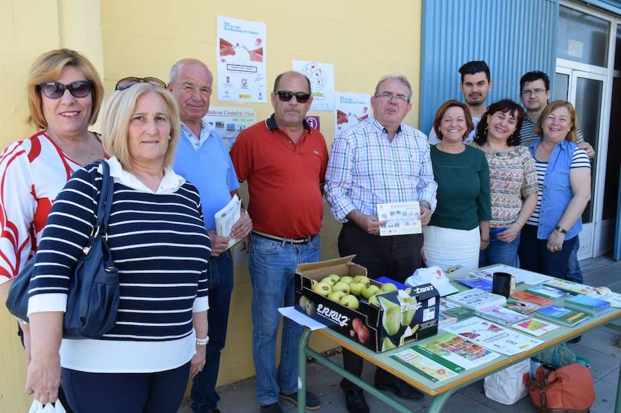El alcalde de Vícar, Antonio Bonilla, acompañado de la concejala de Bienestar y Familia, Clementina Ortiz, se ha acercado hasta el stand para participar de forma activa en esta campaña informativa y de sensibilización sobre los efectos nocivos que para la salud tiene el tabaco, animando a los transeúntes fumadores a cambiar su cigarillo por una pieza de fruta.
