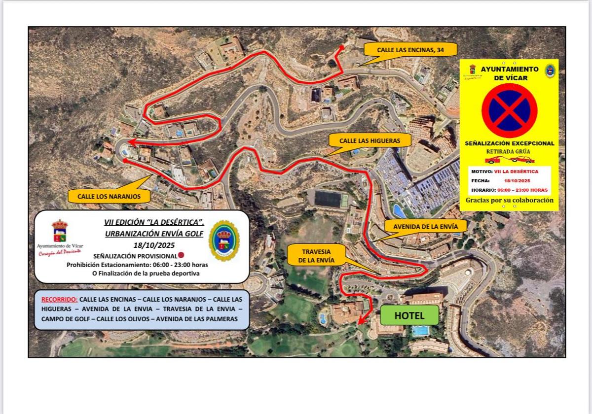 La prueba deportiva de La Desértica volverá a pasar este fin de semana por La Envía, en Vícar y por ello el Ayuntamiento informa de ... algunas medidas que afectarán al tráfico durante la celebración de la misma.