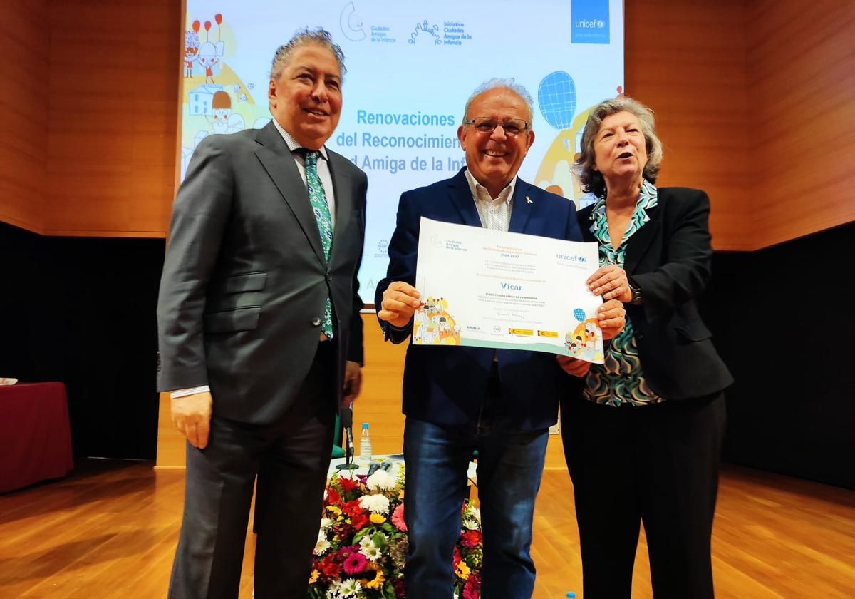 Vícar renueva como 'Ciudad Amiga de la infancia', distinción que dio Unicef en la capital andaluza